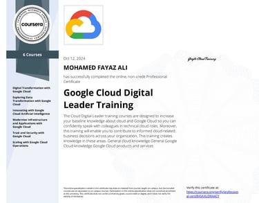 Google Cloud Digital Leader Professional Certificate