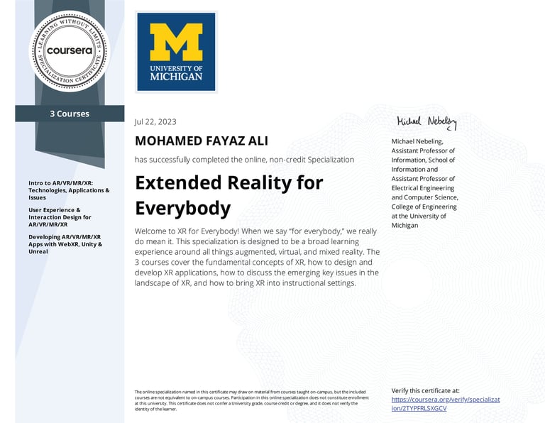 XR Design Specialization Certification